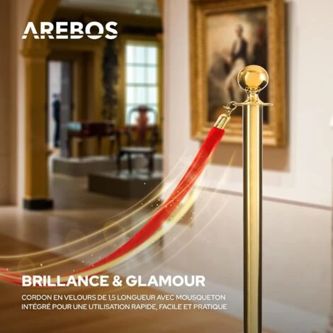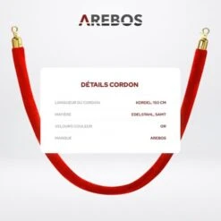 [Une touche de Saint-Tropez] Avec le cordon velours d’AREBOS, glamour et glamour se créent à chaque type d’événement. Combinez le ruban de barrière avec les poteaux de barrière d’AREBOS.