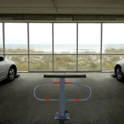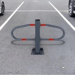 La barrière de stationnement pliable en acier robuste avec une serrure intégrée et 3 clés éloigne les intrus de votre place de stationnement.