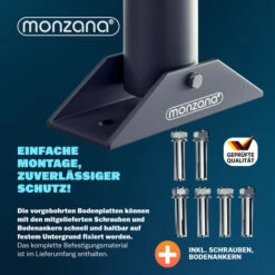 - Avec vis et 6 ancrages de sol, cadenas avec 3 clés et plaque de