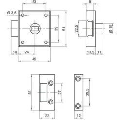 Batteuse GDF à 1/2 tour universelle avec gâche acier.