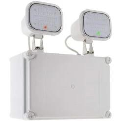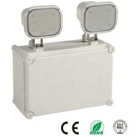 Bloc de secours avec spots LED de 6W chacun et un total de 600 lumens. LumiĂšre de secours qui s’allume automatiquement en une seconde en cas de coupure de courant et avec une autonomie pouvant aller jusqu’Ă 3 heures. Avec une batterie 6V/4500mAH et deux spots LED SMD 2835 d’une puissance de 6W chacun. DegrĂ© de protection IP65 pour rĂ©sister aux environnements humides. Tension 230V. Ce luminaire de secours est utilisĂ© dans tous les types de bĂątiments. Lorsqu’il est Ă©teint, la lumiĂšre de secours peut s’allumer automatiquement. Il est principalement utilisĂ© dans les centres commerciaux, les hĂŽtels et les bureaux. Dimensions de 238x320x130