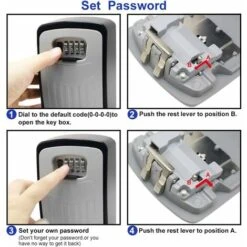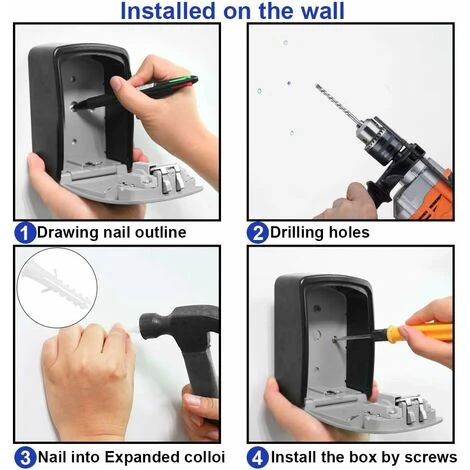 PRATIQUE- Boîte de serrure à clé fournit 4 vis libres et 4 chevilles d’extension qui sont utilisées pour la fixation au mur. Le manuel vous offrira des conseils utiles pour utiliser ce produit. En utilisant cadenas à combinaison 4 chiffres, vous n’avez pas besoin de stocker vos clés près du portail ou sous les articles, ce qui est extrêmement dangereux pour votre maison. Le verrouillage par mot de passe est idéal pour la maison, les entrées d’urgence, les maisons de vacances, les gardes d’animau