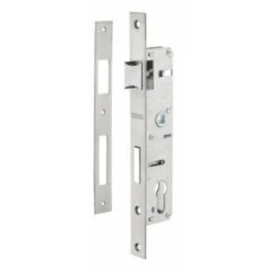 Cette serrure à encastrer à cylindre est prévue pour une pose sur une porte d’entrée en métal. Elle s’insère dans l’épaisseur de la porte et est ainsi totalement invisible.