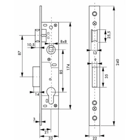 Serrure à encastrer à cylindre axe 21 ou 22 réversible