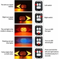 Couleur: feu principal rouge, clignotant jaune