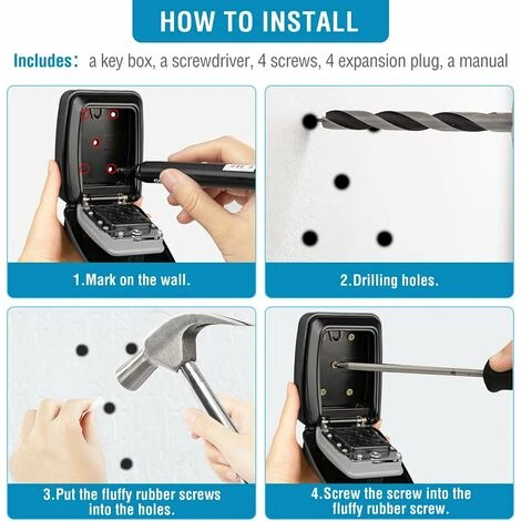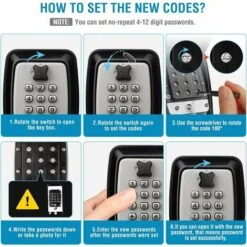INSTALLATION RAPIDE – L’installation est très simple. Le produit comprend une boîte à clés murale et des outils d’installation pour assurer une installation stable sur n’importe quel mur. Le mot de passe réinitialisable à 12 chiffres offre des milliers de combinaisons pour assurer le plus haut niveau de sécurité. Il est recommandé de prendre une photo ou de l’écrire avec un stylo après avoir défini le mot de passe. Une fois le mot de passe oublié, vous ne pourrez plus utiliser la boîte à clés.
