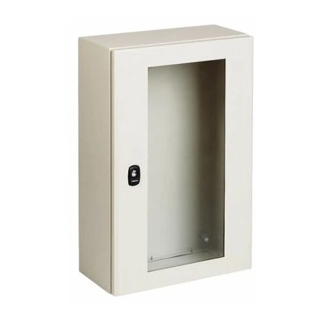 Boîtiers Box Enclosures en acier Spacial S3D de Schneider Electric. De Schneider Electric, il sagit de la série S3D de boîtiers muraux en acier, à montage mural. Les boîtiers S3D sont légers et vous pouvez choisir entre les modèles IP 66, IP 55 IK 10 et IK 08. Ce boîtier mural durable et résistant à lusure est doté dune haute résistance aux UV avec des charnières traitées, y compris des broches à charnière en aluminium. Une porte réversible à ouverture de 120° peut être facilement retirée et dotée dun pli de retour de 20 mm pour garantir que la porte reste rigide et en place. Il sagit dun boîtier mural véritablement universel avec des fonctions de sécurité supplémentaires, facile à installer et à monter, ainsi que de différents types de châssis, types de porte et tailles disponibles. Le boîtier mural S3D inclut un soudage à plasma, un bord de porte chanfreiné et est en polyester époxy à revêtement poudré. Caractéristiques du boîtier mural Spacial S3D. Léger avec une feuille dacier à structure transversale pliée. Corps plié et soudé en une seule pièce, profil avant en forme de gouttière à double épaisseur de plaque. Panneau arrière plat. Protection IP 66 (porte simple), protection IP 55 (porte double). Résistance aux chocs IK 10 (portes plates), résistance aux chocs IK 08 (portes vitrées). Choisissez parmi des portes plates ou vitrées. Tailles disponibles de 300 x 200 x 150 à 1 500 x 1 000 x 300 mm. Ouverture de porte réversible à 120°. 2 ou 3 charnières invisibles amovibles avec 3 points de fermeture. 1 goujons de mise à la terre soudés sur la porte et le corps du boîtier. 4 goujons soudés à épaulement de 10 mm pour le montage direct du châssis. Supports de montage mural fixés de lextérieur. Large choix de plaques de presse-étoupe pouvant être équipées dune entrée de câble rapide. Large gamme de châssis (châssis blindé en soie, châssis microperforé, châssis perforé). Protection. IK10 signifie que les boîtiers sont protégés contre 20 joules dimpact (léquivalent de limpact dune masse de 5 kg tombant de 400 mm au-dessus de la surface affectée).IP66 offre une protection contre la poussière et les jets deau puissants. Peut être utilisé sur les ponts de navires. Applications. Automatisation industrielle et contrôle industriel Boîtier dédié avec boîtier CEM S3HF (10 dimensions). Boîtier dédié avec boîtier de terminal S3DB (11 dimensions). Large choix de châssis daccessoires, dentrée de câble et de gestion de câble. Distribution électrique Boîtier dédié avec Spacial S3DM (boîtier 8 dimensions avec profondeur 150 mm). Réseaux électroniques et industriels Boîtier dédié Spacial VDM (équipé dun cadre de 19?). Boîtier mural compact multi-usage Spacial S3D4315T de NSYS3D avec verre de porte de sécurité. Compacte. Multifonctions. Montage mural. 1 porte gazée. Aucune plaque de montage fournie. Plaque de presse-étoupe standard. Double épaisseur de feuille de rail avant en forme de gouttière Corps en une seule pièce. Ouverture de porte réversible à 120° x 1. Verrou à double barre de 3 mm. Charnières, plaque de presse-étoupe amovible. Le boîtier est en acier, la porte est en acier et le verre de sécurité. Finition de boîtier en poudre époxy-polyester avec une couleur Gey RAL 7035. IP66 conforme à la norme CEI 60529. IK08 conforme à la norme CEI 62262. Le kit inclut : 1 corps de boîtier, 1 porte (avec verre de sécurité), 1 serrure, 1 plaque de presse-étoupe.