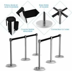 - 【Poteaux pratiques et de taille adéquate:】Ce lot de 6 poteaux avec sangles rétractables est composé de 3 unités guide-file. Vous pouvez régler aisément l’écartement de la sangle rétractable avec une portée maximale de 2 m de long entre deux poteaux.