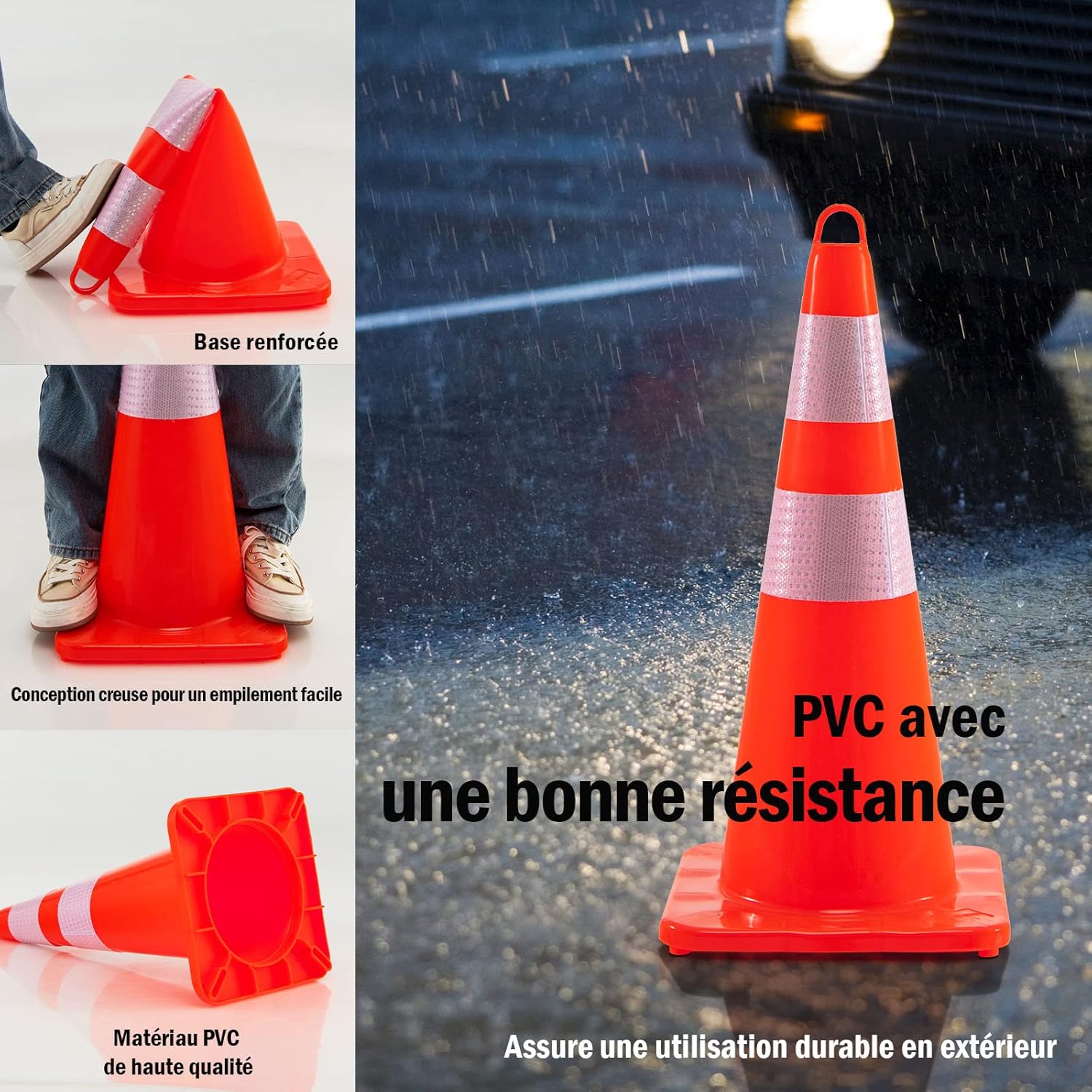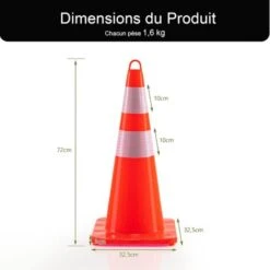 - Dimensions de chaque cône de signalisation : 32,5 x 32,5 x 72 cm (L x l x H)