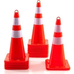 - Notre cône de signalisation de sécurité vous offre une sécurité et vous pouvez l’utiliser à plusieurs reprises, telles que le contrôle de la circulation, les urgences automobiles, les chantiers de construction et l’école. Le PVC de haute qualité rend le cône de signalisation résistant à toutes sortes de conditions météorologiques, et sa base solide et plus large garantit qu’il ne se renversera pas facilement. La couleur orange vif et la bande argentée réfléchissante attirent toujours le regard, de sorte que la sécurité soit hautement assurée.
