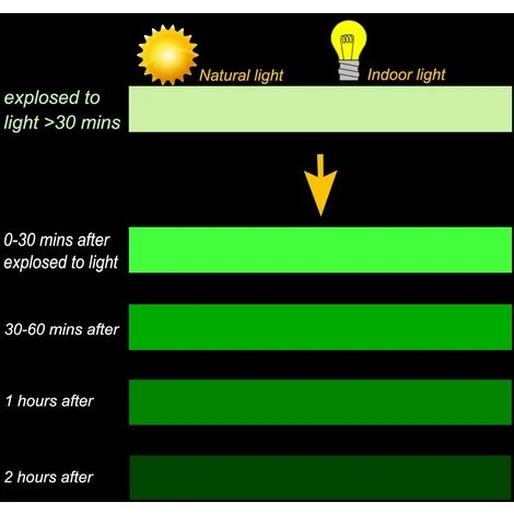 - 30 minutes absorbent la lumière naturelle et ne nécessitent pas d’énergie supplémentaire, elle peut briller pendant 4-6 heures.