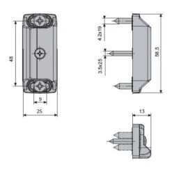 Gâche en zamac pour serrures centrales et pênes haut-bas (à exclusion de l’art. 8401I), utilisable sur portes à deux vantaux. Réglable en horizontal et applicable sur les profils coplanaires et sur ceux avec recouvrement jusqu’ à 10mm, sans l’aide de cales supplémentaires