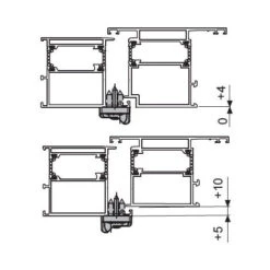 Réglable horizontalement. Applicable sur profils affleurants et à recouvrement jusqu’à 10mm
