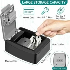 Utilisation LargeLe coffre cl avec 4 code chiffres est assez grand (la taille interne est d’environ 3,94 * 3,15 * 1,38 pouces) et peut contenir 8 12 cls, de grandes cls de voiture et d’autres petits objets. Le produit comprend une coffre