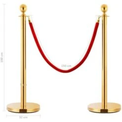 Fabriqués en acier inoxydable de première qualité, ces poteaux de sécurité sont spécialement conçus avec une base solide et fiable. Ces poteaux colonne ont un aspect miroir poli pour assurer une grande élégance. La corde de velours, d’une longueur de 150 cm, est équipée de crochets pour une installation facile. De plus, la base robuste est suffisamment solide et stable pour éviter le basculement.