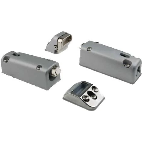 - Paire de pênes haut-bas verticaux, avec corps et embout en zamac, équipé de gâche supérieure en zamac et gâche de sol en acier inox.