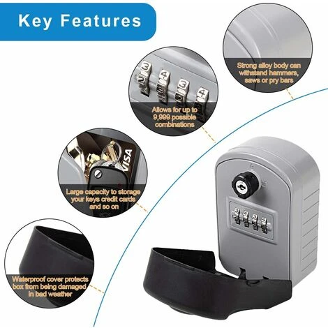 Grand & Rangement: La capacité du grand bo?te à clefs avec code extérieur est suffisamment grande (taille intérieure environ 11,5 * 8 * 4,3 CM) pour placer clés de maison, bureau ou autres grandes clés de voiture; Et vous pouvez également stocker quelques petites choses si nécessaire, telles que cartes de crédit, cartes d’identité etc.