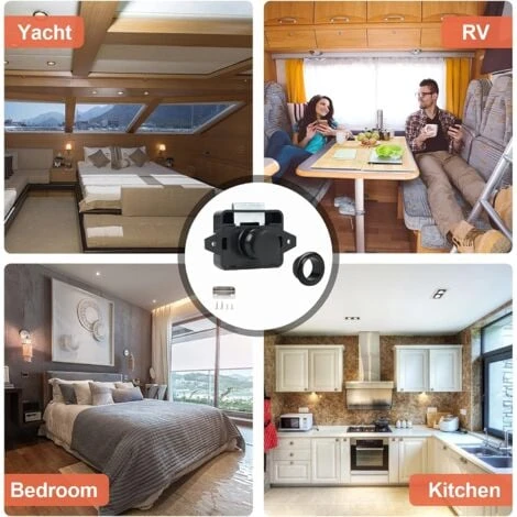 Matériaux de haute qualité : la grande serrure de camping-car est fabriquée en alliage de zinc de haute qualité et en ABS de haute qualité, qui est robuste et fiable. L’extérieur est peint avec une peinture artificielle non polluante, respectueuse de l’environnement et sans danger, difficile à rayer et ayant une durée de vie plus longue. En même temps, vous avez le choix entre deux coloris noir et blanc nacré, à choisir selon votre intérieur. Fonction : la serrure à bouton de chasse sans clé peut fermer en toute sécurité votre armoire ou porte d’armoire pour vous empêcher d’ouvrir la porte de l’armoire intérieure lorsque vous déplacez et secouez des yachts, des bateaux et des camping-cars. Champ d’application : la serrure d’armoire à bouton convient à tous les types de portes d’armoires de camping-car, de tiroirs de meubles, de portes d’armoires, de meubles d’armoires. Dimensions : pour les portes et tiroirs d’une épaisseur de 15-18 mm, le diamètre du trou est de 26 mm. Facile à installer : vous n’avez pas besoin de trouver un professionnel pour l’installer. Lorsque vous recevez le colis, la partie principale est déjà assemblée. Il vous suffit de fixer la vis de blocage. Ou s’il y a des problèmes avec l’installation, n’hésitez pas à nous contacter. Remarque : Zorg ervoor dat uw openingsgrootte 26mm O-vorm is, anders wordt het slotlichaam los. Installeer de slotzitting door het gat. Gebruik een kruiskopschroevendraaier om het slot vaste te zetten met de langere schroef. Bevestig de sluitplaat L met de kortere schroef (het lipje moet in de juiste positie ten opzichte van het slot staan voor een succesvolle installatie