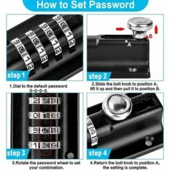 【Sécurité Améliorée】Ce verrou à combinaison recodable ajoute une combinaison à 4 chiffres aux serrures à loquet de porte ordinaires, vous permettant de définir jusqu =’à 10 000 mots de passe possibles, ce qui améliore considérablement votre sécurité et