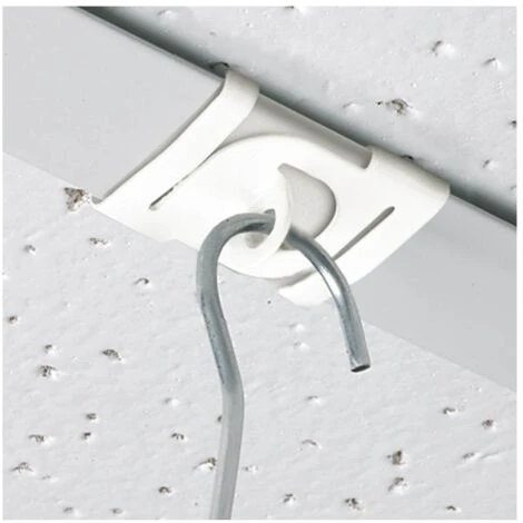 Crochet à double pince permettant une fixation fixe et solide sur les rails de faux plafond.