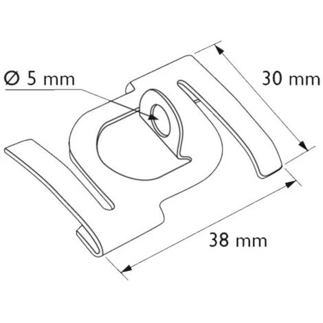 Dimensions (H x L) : 38 mm x 30 mm. Diamètre perforation : 5 mm. Convient pour des charges légères.