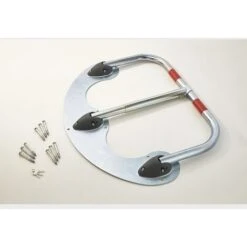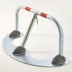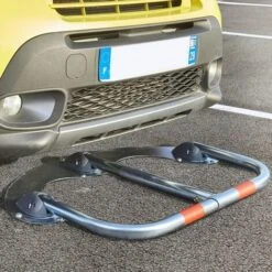 La barrière se fixe avec des clous spéciaux fournis, juste avec un marteau, donc sans perçage ni vissage Vous n’abimez pas votre parking. Pour les parkings souterrains où il est interdit de percer et clouer, vous pouvez la coller si le support est en béton avec un mastic:colle MS polymère sans solvant La forme particulière de l’arc de cercle permet d’amener de la souplesse pour couvrir éventuellement les défauts de planéité du sol et permet aussi une plus forte résistance aux coups Acier zingué anti-rouille, embases en résine ultra résistante : 10 tonnes à l’écrasement Tube diamètre 50 et 45mm Serrure canon européen Livraison possible avec clé identique ou avec passe Clou : diam 12 mm, longueur 120mm, 9 perçages par barrière = 9 clous fournis Platine : 102 x 46cm ; tôle épaisseur 3mm Tient à l’arrachement 1 200Kg et 5000Kg à l’écrasement Fixation au sol fournie