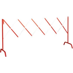 Barrière de chantier extensible en acier, couleur rouge et blanc.