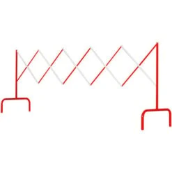 Barrière de chantier extensible en acier, couleur rouge et blanc.