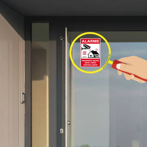 Disponible en plastique PVC, aluminium Dibond ou en adhésif permanent et en plusieurs tailles, vous pouvez fixer le panneau de sécurité Alarme – Propriété privée sous Surveillance Vidéo 24h/24h sur une façade, un portail, une vitre, une porte, une boîte aux lettres, etc.