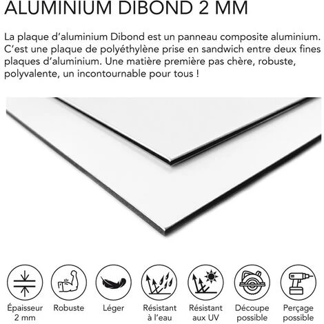 La plaque aluminium est composée de matériaux légers et rigides dont les deux faces (une face brillante, une face mate) de couleur blanche sont parfaitement lisses et ne s’oxydent pas.