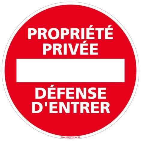 En installant cette signalisation disque propriété privée vous indiquez à tous qu’il est interdit d’entrer sans autorisation sur votre propriété sous peine de sanctions car celle-ci est privée. C’est pourquoi il faut installer sur sa propriété un panneau propriété privée défense d’entrer.