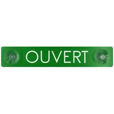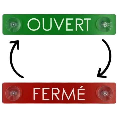 Plaque recto/verso avec inscription OUVERT et FERMÉ fournie avec 2 ventouses.