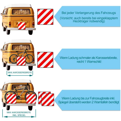 Le panneau d’avertissement rĂ©flĂ©chissant de 50 x 50 cm sert Ă signaler les charges qui dĂ©passent sur les vĂ©hicules de camping, les porte-vĂ©los, les remorques, les caravanes, les remorques de bateau, les porte-vĂ©los de voiture et autres extensions.