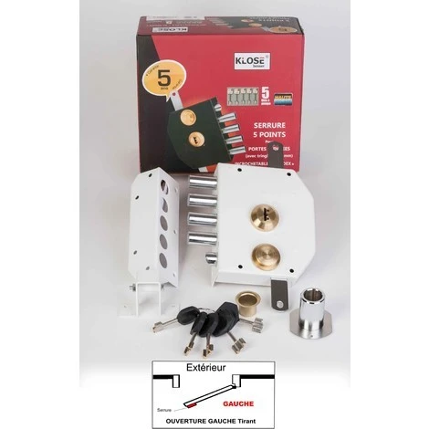 Serrure 5 Points à Tirage » Blindex « 5 Clés A Pompe, Blanche Gauche – (idem Iseo….) KLOSE BESSER