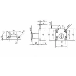 Serrure à crochet ; En acier chromé ; Avec 1 barillet, 1 platine, 1 rosace et 2 clés ; Dimensions = 40 x 40mm ; Entraxe = 30mm ; Maximum 120 combinaisons possibles