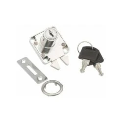 Serrure à crochet ; En acier chromé ; Avec 1 barillet, 1 platine, 1 rosace et 2 clés ; Dimensions = 40 x 40mm ; Entraxe = 30mm ; Maximum 120 combinaisons possibles