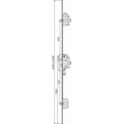 En acier galvanisé. Coffre central de 148 x 78 x 15,5 mm. Coffre haut et bas de 124 x 45 x 15 mm. Distance entraxe : 70 mm. Axe à 50 mm. Axe à 1045 mm du sol. Fouillot carré de 7 mm. Demi-tour réversible sans démontage du coffre. Utilisation de garnitures standard.