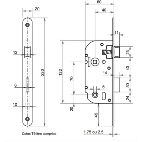 La serrure à larder 2620NF73X6R possède une têtière à bouts ronds.