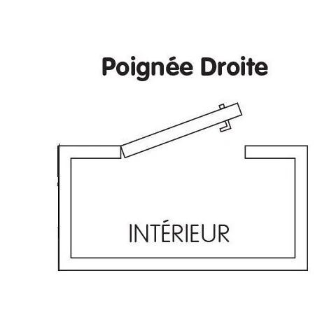 Pour déterminer si l’ouverture de la serrure est à droite, il suffit de confirmer que la poignée est à votre droite quand vous êtes à l’intérieur.