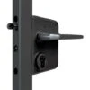 Serrure de sécurité enfant pour portillon de piscine. La serrure nécessite 2 actions simultanées pour libérer le pêne, ce qui évite l’accès aux enfants à la piscine.