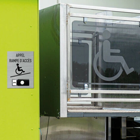 Signalisation APPEL RAMPE D’ACCES ALU BROSSE + Sonnette intégrée (Q0034)