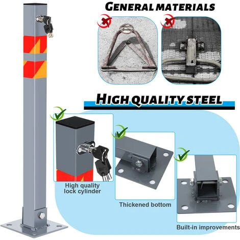 Avec notre borne de blocage de parking privé rabattable, vous pouvez sécuriser votre emplacement de stationnement contre les visiteurs indésirables ! Les bandes réfléchissantes offrent une bonne visibilité de jour comme de nuit.