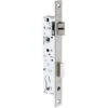 Pommeau extérieur en acier embouti avec cylindre de sûreté à goupilles. Pommeau intérieur en acier embouti avec double entrée de clés. Pêne 1/2 tour réversible avec dispositif de sécurité et têtière rectangulaire. Gâche plate. Axe réglable 60/70mm. 3 clés en acier nickelé.