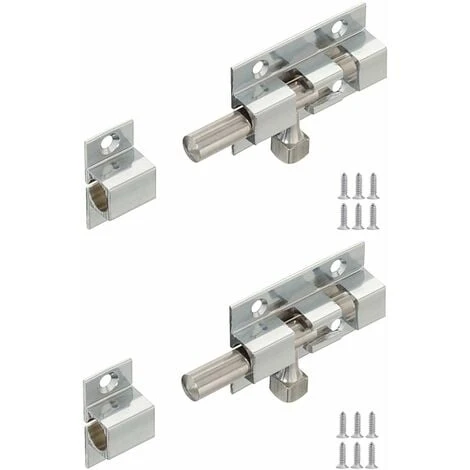Verrou à Broche Pour Meuble En Laiton Chromé Avec Pêne Rond Coulissant Et Contre Pièce à Visser Levier Loquet Cadenas Fermeture Porte Rénovation Targette Sécurité, 40 X 25mm
