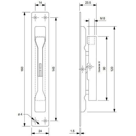 - A encastrer 120 x 23.5 mm