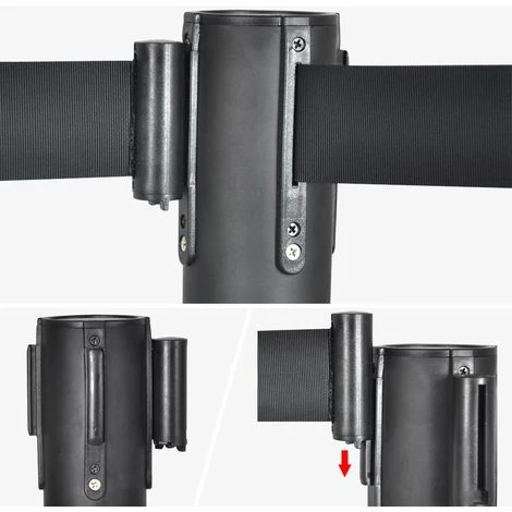 livré avec des ceintures rétractables de 2m de long. La barrière de file